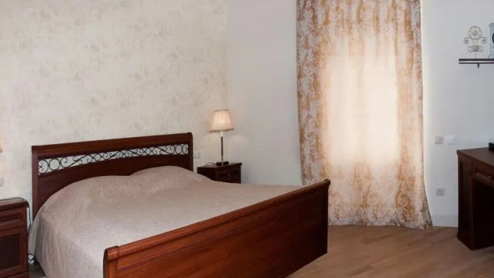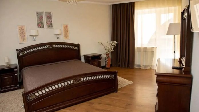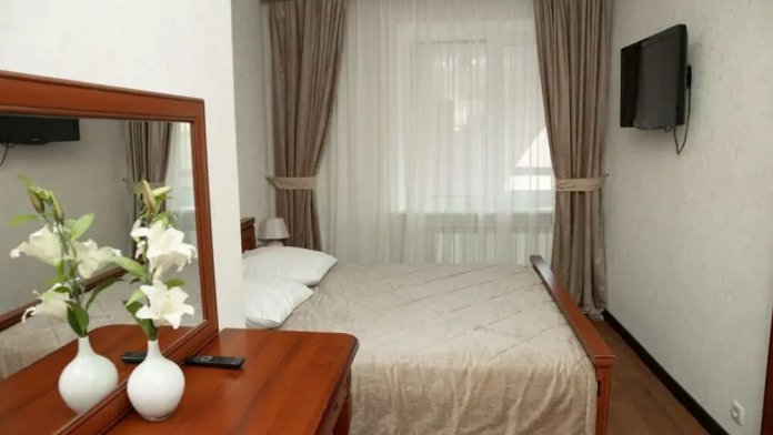 Комплектация: 2 раздельные 1,5 сп. кровати, шкаф, тумба, LCD телевизор 32»,холодильник, вешалка, прикроватные тумбочки.