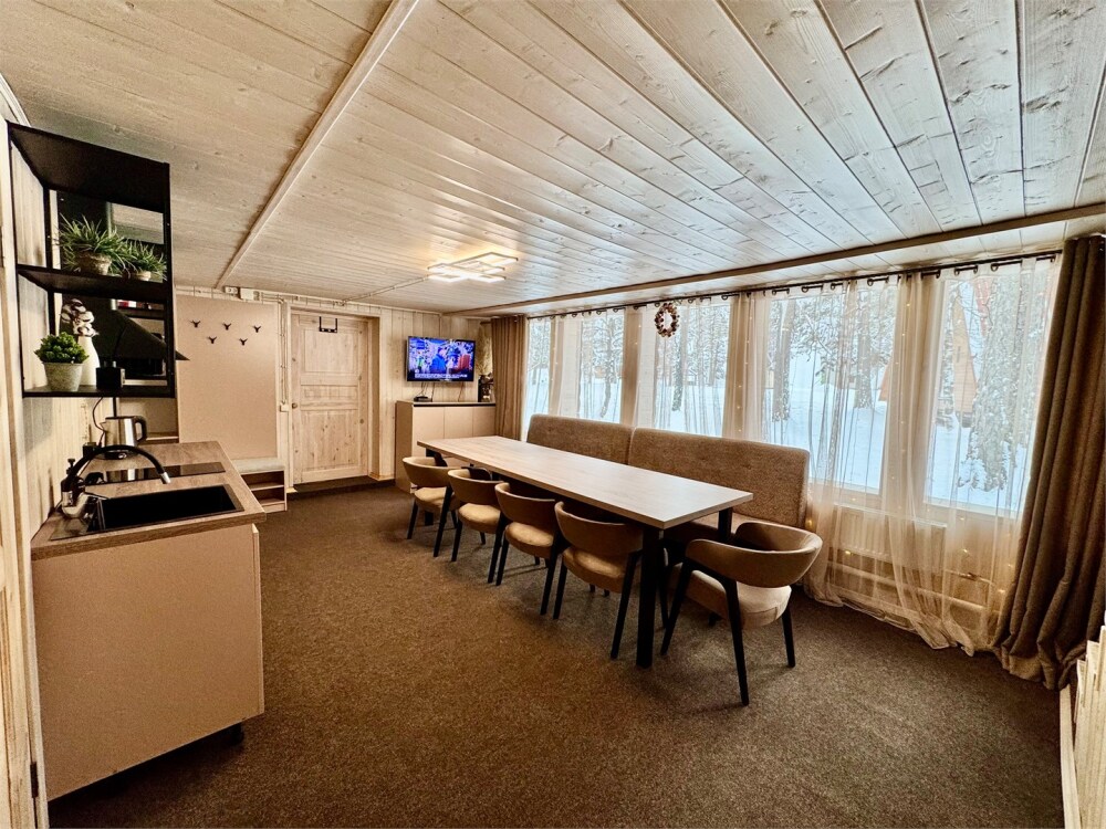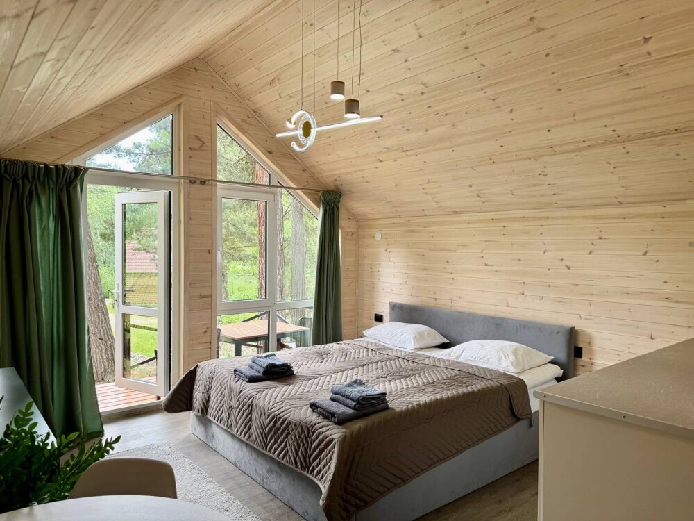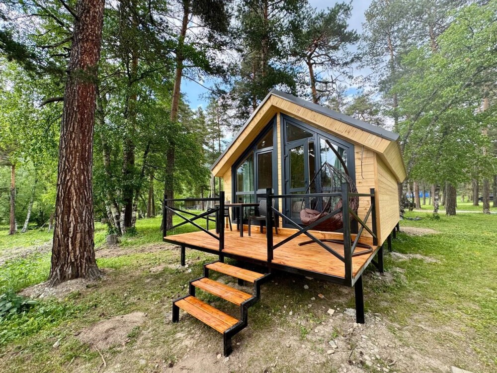 Новый 2-местный 1-комнатный эко-дом Студия с панорамными окнами, живописным видом на озеро «Таулу», величественные горы и многолетний сосновый лес.