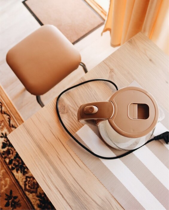 Из техники имеется телевизор, чайник, микроволновая печь, холодильник. Есть минимальный набор посуды.