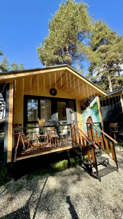 В домике есть все удобства, душ, санузел, кухонная зона с посудой и газовой плитой где можете приготовить себе завтрак. Есть своя мангальная зона. Отопление паровое не конвекторы которые сушат воздух.