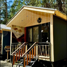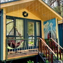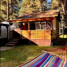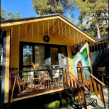 Домики разные и все с удобствами, с кухонной зоной с посудой, с плитой для варки, холодильник, Wi-Fi, телевизор, есть книги. Есть варианты с размещением в номерах «Эконом». Мангальные зоны, беседки, качели. Территория 70 соток, огорожена, имеется парковка с видеонаблюдением, беседки, качели, две бани. На территории имеется кофейня со сладостями и напитками, кальянная.