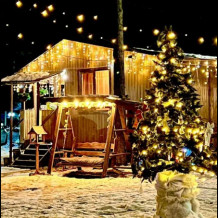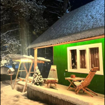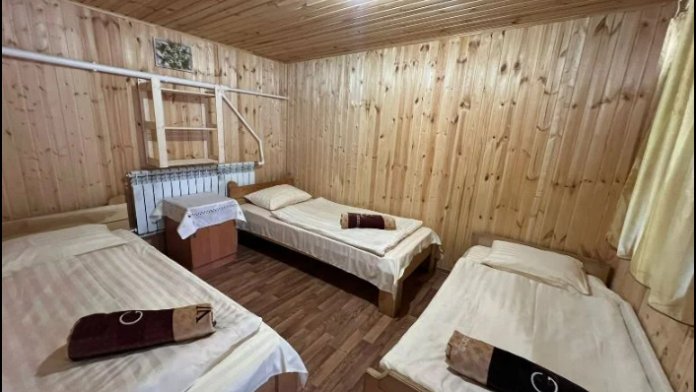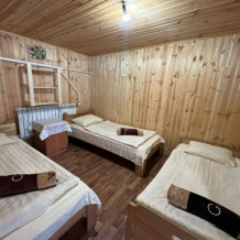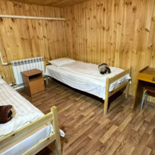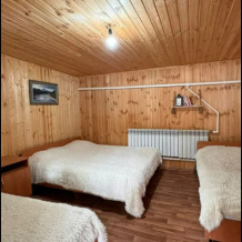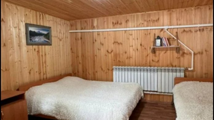 В большом доме три спальни, 2 спальни по 4 места и в одной спальне 2 места (кровать двухспальная). Есть ТВ, Wi-Fi, печь газовая 4 камфарная, вся необходимая посуда, холодильник, душ, санузел, своя мангальная зона, качеля перед домом. Кухня с двумя столиками. Дом очень теплый. Паровое отопление стоит. Нет никаких электрических конвекторов и газовых котлов внутри дома. Всё безопасно.