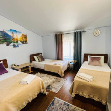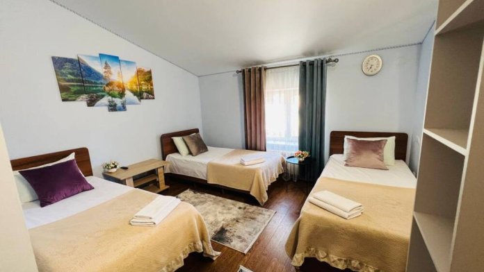 В номере три раздельные кровати. Все номера оснащены ванной комнатой и необходимой мебелью: прикроватные тумбочки, столик, шкаф для одежды.
