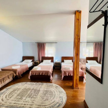 Распитие и хранение спиртных напитков строго запрещено! Гостевой дом «Eco_House-Arkhyz» расположен в центре посёлка Архыз. В стоимость входит шведский стол [на даты с 30.12.24-28.02.25]. К услугам гостей столовая, круглосуточная стойка регистрации. В номере двуспальная кровать и двухъярусная кровать. Номер оснащен необходимой мебелью: прикроватные тумбочки, столик, шкаф для одежды. Wi-Fi. Частная парковка! Мангальная зона!