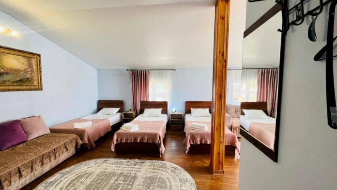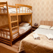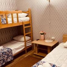 В номере две раздельные кровати и двухъярусная кровать. Во всех номерах ванная комната, все номера оснащены необходимой мебелью: прикроватные тумбочки, столик, шкаф для одежды.