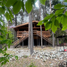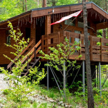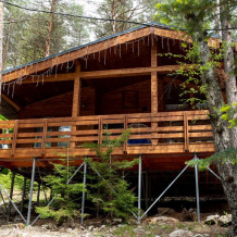 Просторный дом-шалаш с 2 мя спальнями на втором этаже и просторной гостиной на первом площадью 70 м2. С большой террасы открываются невероятные по красоте виды на горы и лес. А удаленность от остальных шале позволит погрузиться в тишину и красоту окружающей природы.
