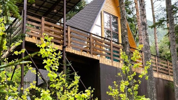 4- и 6-местные домики шале с террасами, в сосновом лесу в Архызе с великолепным видом на склоны гор.