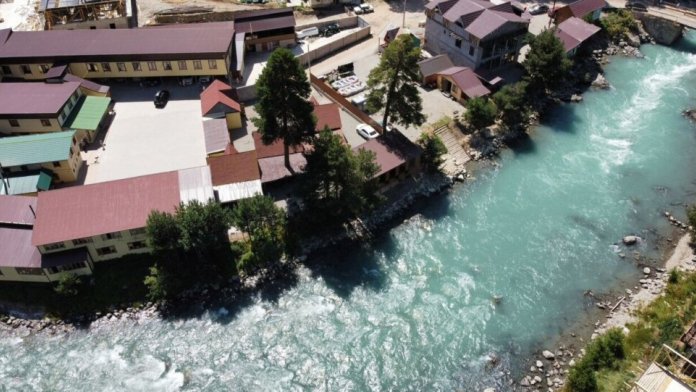 Трёхместный Рафтинг (3 домик 5 комната) площадью 17 кв. м с видом на горы и реку. Подходит для размещения 3 человек3 (3 основных места). Имеет спальню с приятным интерьером. В номере: 1 двуспальная и 1 односпальная кровати. Имеется телевизор, отопление, вешалка, журнальный столик, посуда, столовые приборы, холодильник, стулья. Индивидуальная ванная комната: душ, раковина, туалет. В стоимость входит: постельное бельё, полотенца, мыло, тапочки, фен. WI-Fi бесплатно на всей территории. Бесплатная частная парковка на территории.