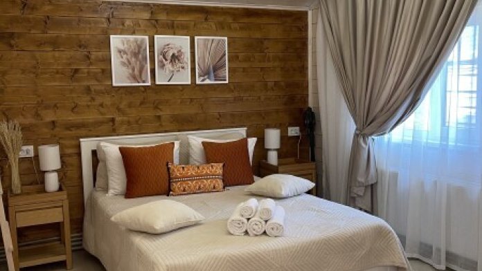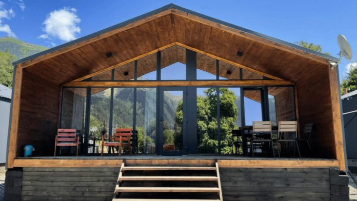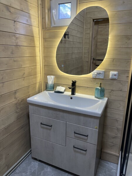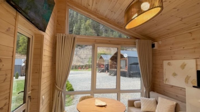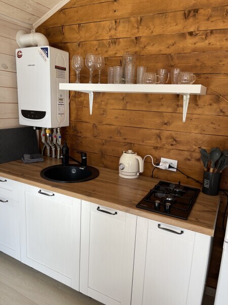 Комфортные дома с террасой, кухней, Wi-Fi и панорамным видом на горы. Наши деревянные дома построены с соблюдение всех технологий строительства, благодаря чему в домах прекрасно удерживается тепло внутри. Нагреваясь, дом медленно отдаётся тепло в окружающую среду. В домах газовое отопление, в каждом доме установлен двухконтурный газовый котёл, тепло и температуру в доме можно регулировать самим не выходя из дома.