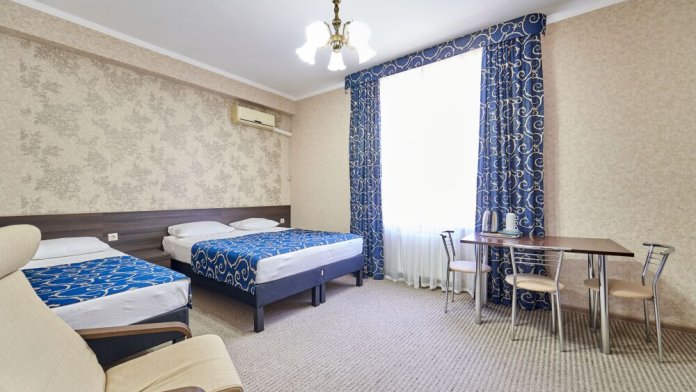 Номера поразят Вас своей чистотой и изысканностью. Все они оснащены телевизором, кондиционером, мини-холодильником, чайником и феном.