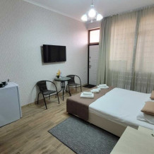 10 номеров с двуспальной кроватью и доп. местом, оборудованные всем необходимым для проживания 2 гостей на основных местах и одного на доп. месте