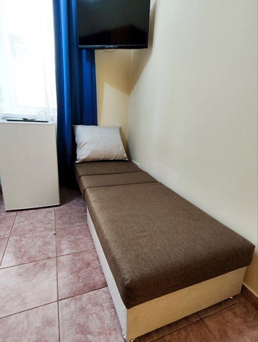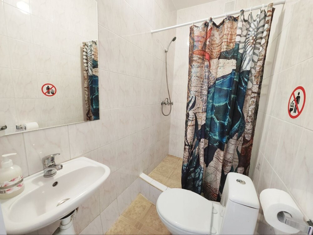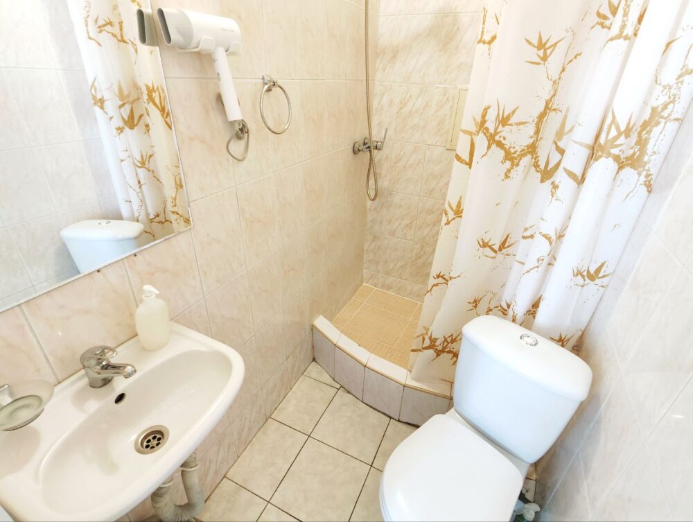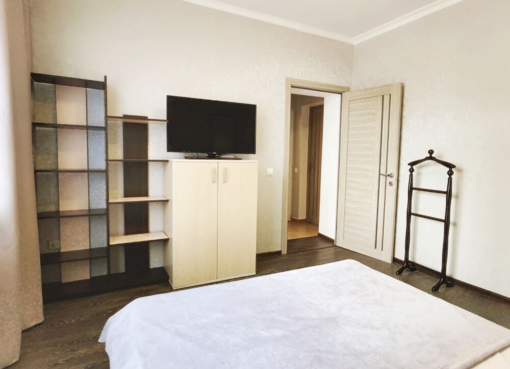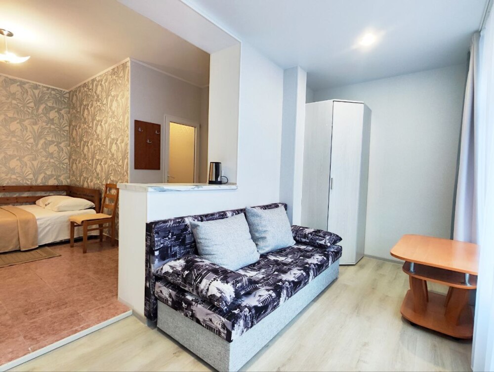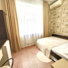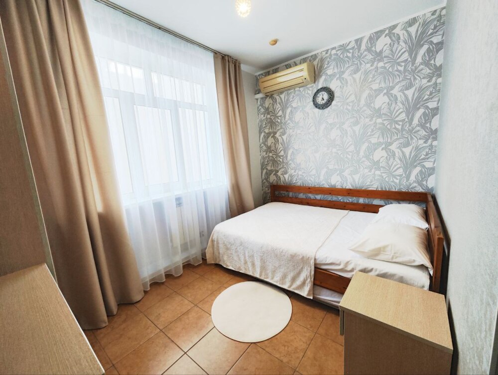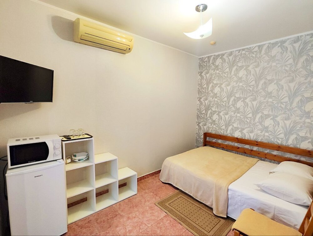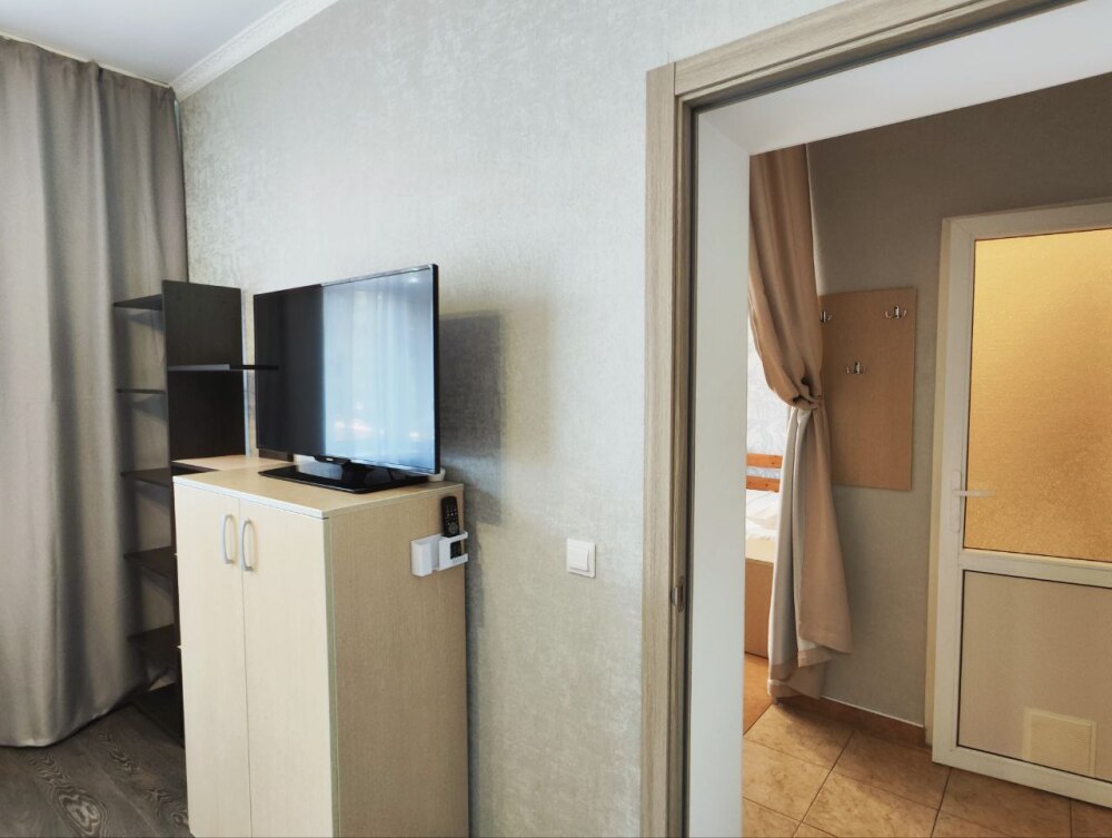 Двуспальная кровать 1.60, кресло-кровать, телевизор, холодильник, кондиционер, индивидуальный санузел.