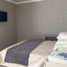 В квартире комфортабельная мебель, кровать с ортопедическим матрацем, хлопковое постельное белье и полотенца, покрывала, плед.