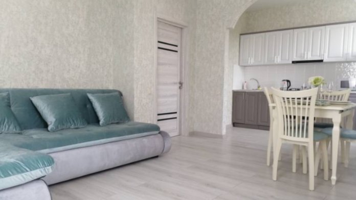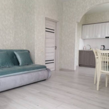 В апартаментах отдельная спальня и просторная гостиная, удобная планировка для комфортного отдыха. Имеется 4 спальных места: 2 в спальне и 2 на удобном раскладывающемся диване. Отдельно стоит отметить наличие кухни с необходимым инвентарем и оборудованием для приготовления блюд, что очень удобно. В апартаментах санузел с душем и стиральной машинкой.