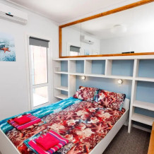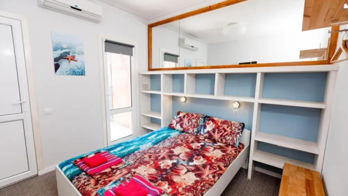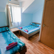 В каждом номере телевизор, кондиционер, балкон, санузел с душем. Во всех номерах вид на море.