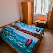 Половина номеров с одной двуспальной кроватью, половина - с двумя односпальными.