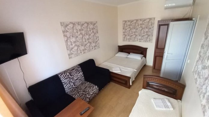 В номере: 1 двуспальная кровать, 1 диван двуспальный, 1 односпальная кровать.