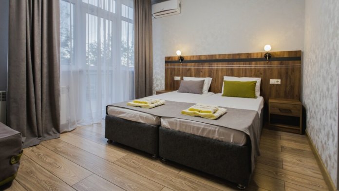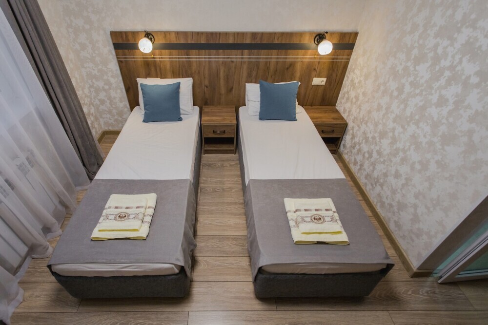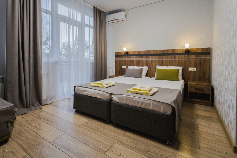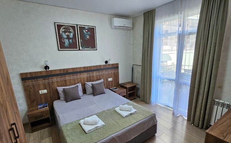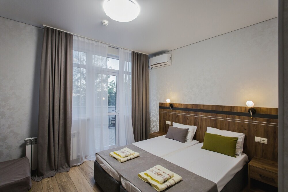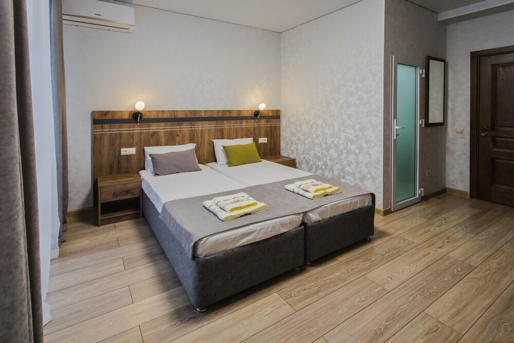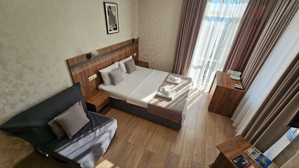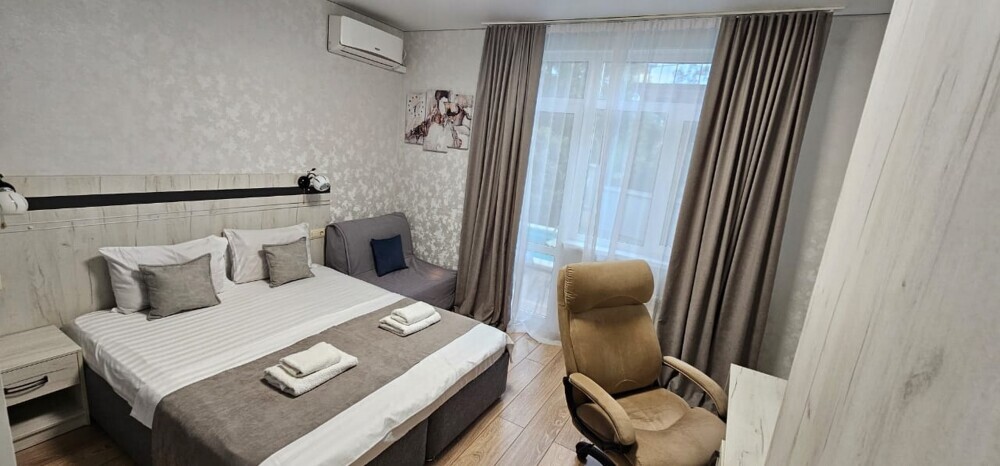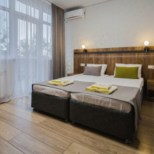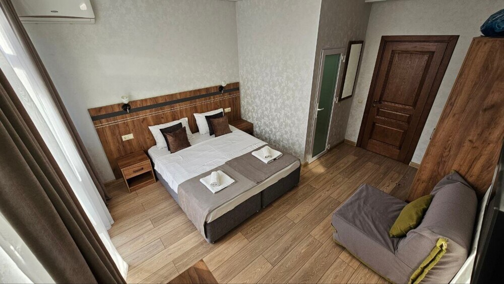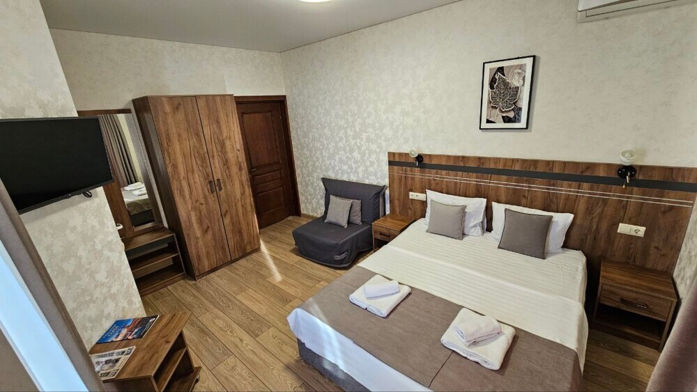 В номере: 1 двуспальная кровать или 2 односпальные кровати, 1 кресло - кровать.