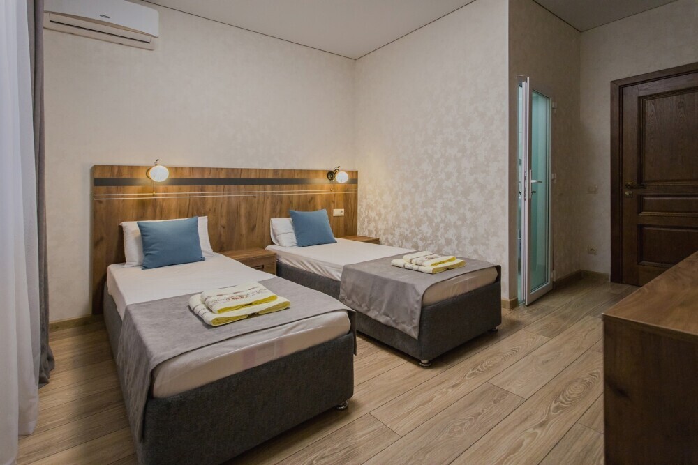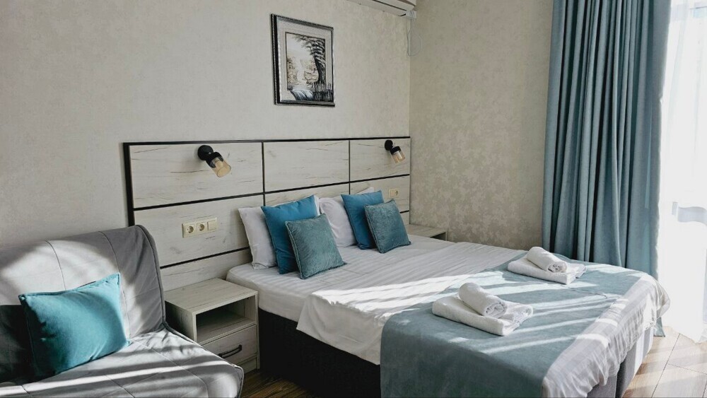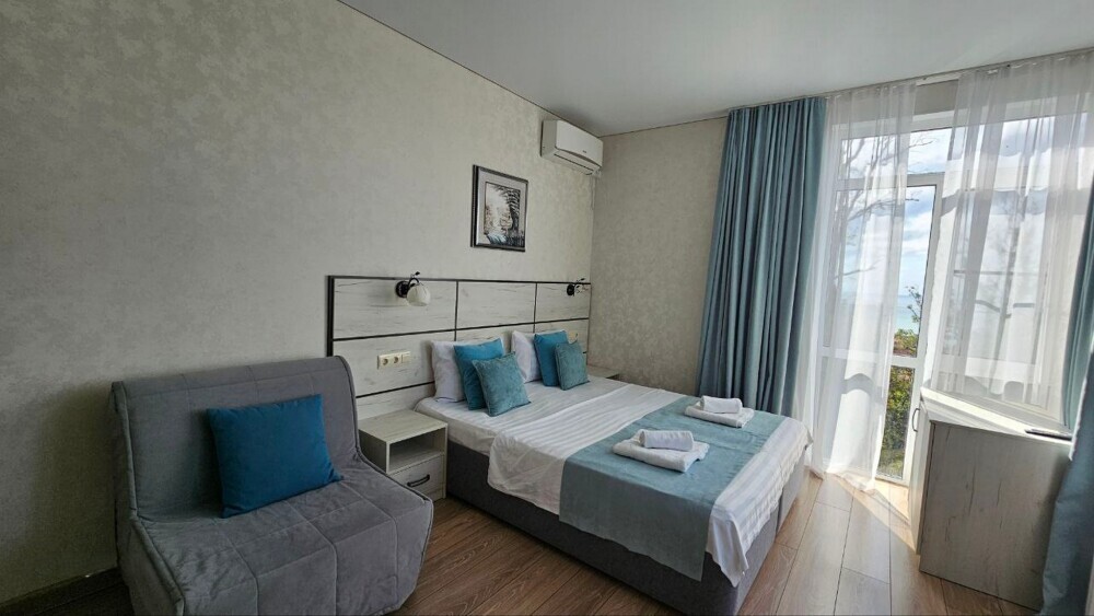 Трёхместный комфортный номер площадью 15 кв.м с видом на море.