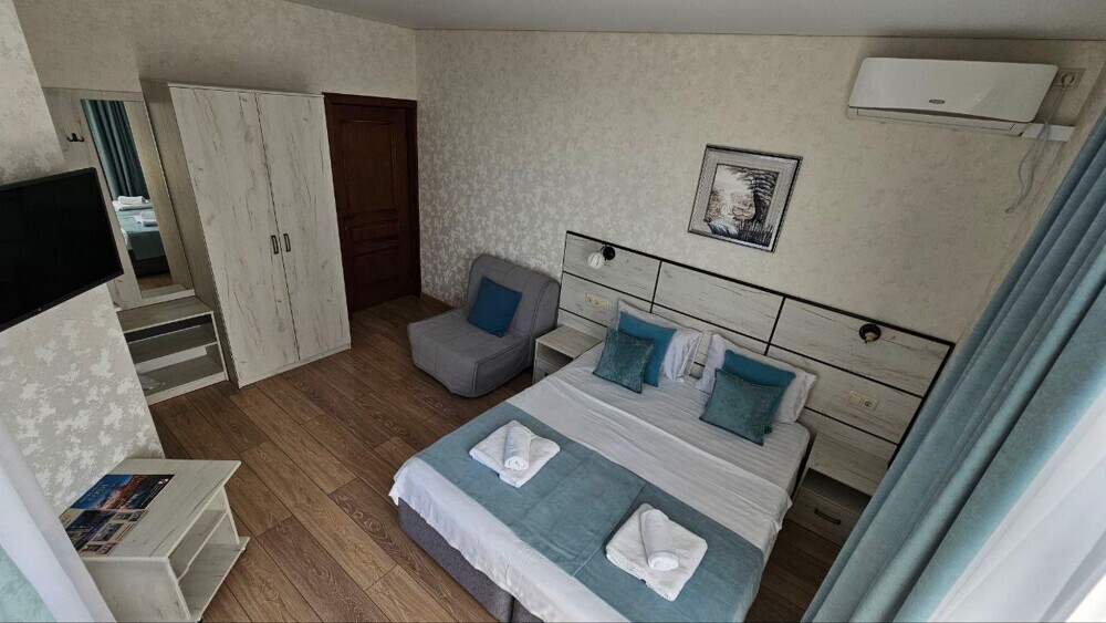 Каждый номер оснащён собственной ванной комнатой с душем и тапочками, телевизором с плоским экраном и кондиционером. Некоторые номера выходят на балкон, откуда открывается шикарный вид на море. В каждом номере установлен шкаф для одежды и письменный стол. Для удобства гостей, уборка в номерах производится по запросу, а смена белья и полотенец - каждые 5 дней.