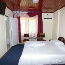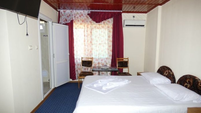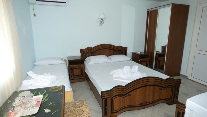 В номере: односпальные или двуспальная кровати, есть вентилятор. Санузел на этаже или во дворе.