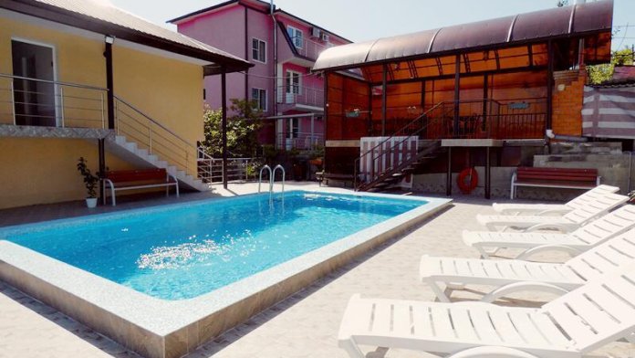 Гостевой порадует Вас наличием бассейна 7х4 м, вокруг которого удобно расположены шезлонги для загара, беседка для приятного времяпрепровождения и отдыха с прекрасным видом. Имеется детский надувной бассейн. Также есть спортивный уголок для поддержания формы и детская площадка, оборудована кухня со всей необходимой посудой. Для наших гостей, прибывших на собственном автотранспорте, во дворе есть стоянка.
