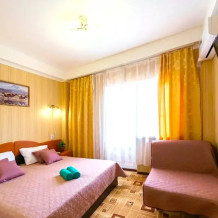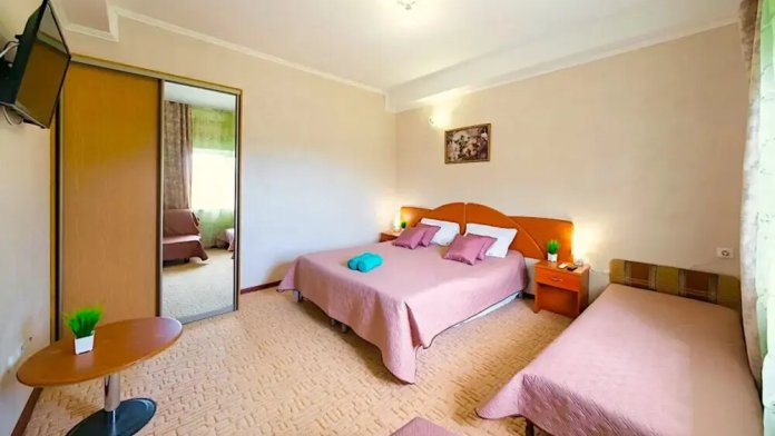 Приглашаем вас остановиться в нашем уютном трёхместном номере! Здесь вы найдёте всё необходимое для комфортного проживания: кондиционер, телевизор, холодильник, фен. В каждом номере есть балкон с видом на море. Сухо, тихо, уютно. Идеальный выбор для вашего отдыха!