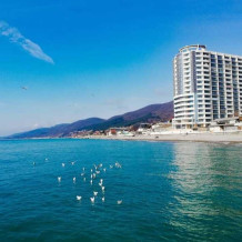 Сдается двухкомнатная квартира на 8 этаже, на самом берегу Черного моря. Площадь квартиры 67 кв.м. Балкон с зоной отдыха -13 кв.м. Дом расположен на первой береговой линии, в 30-ти метрах от моря, и в шаговой доступности от железнодорожного вокзала (до аэропорта Сочи 2ч, до Красной поляны 2ч 40 мин. без пробок на «Ласточке»). Здесь есть все, что нужно для хорошего отдыха: СОБСТВЕННЫЙ ПЛЯЖ с отдельным выходом, кафе, магазины, парковка. Территория жилого комплекса пребывает под круглосуточной охраной, ведется видеонаблюдение. Ландшафт озеленен, предусмотрены места для прогулок. В шаговой доступности кафе, магазины, гипермаркеты, аквапарк, парк аттракционов, дельфинарий. Застекленный (с открывающимися дверьми) балкон выходит на море и центральный пляж. С балкона открываются замечательные виды на весь Лазаревский и на море. Можно встречать рассвет, загорать не выходя из номера, отдыхать в удобных креслах, глядя на море с бокалом вина. Квартира полностью оборудована всем необходимым для комфортного отдыха: два жк телевизора, Wi-fi, стиральная машинка, утюг, гладильные принадлежности, сушка, два кондиционера, фен, техника для кухни (электрочайник, микроволновая печь, посудомоечная машина, холодильник, плита, кофеварка). Мебель: двухспальная кровать, диван и двухуровневая детская кровать, спортивный комплекс с турником, дачный уголок для отдыха на балконе, кресла и журнальные столики, шкафы и полки, ванна, биде, бойлер туалетные и постельные принадлежности. Апартаменты рассчитаны на размещение до 4 человек - 2 взрослых + 2 детей до 17 лет.