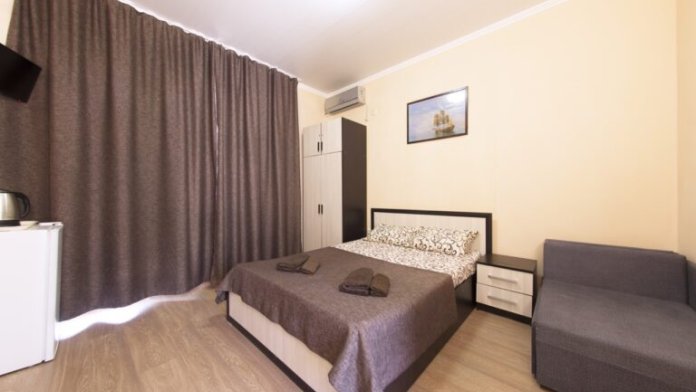 Гостевой дом на пять комфортных номеров. Здесь Вы можете отдохнуть в уютных 2-4 местных номерах со всеми удобствами на закрытой охраняемой территории. Предоставляются просторные, современные, автономные 2-4 местные номера под ключ со всеми удобствами (ванная комната в каждом номере, горячая и холодная вода круглосуточно, холодильник, телевизор,-спутниковое TV,кондиционер, мебель) бесплатный Wi-Fi. Во дворе много зелени, столики и беседка для отдыха, площадка для приготовления барбекю и летняя кухня со всеми принадлежностями и посудой.
