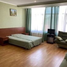 Номера рассчитаны на проживание от 1 до 4 человек. В каждом номере: двуспальная кровать, раскладной диван, сплит-система, телевизор, санузел с ванной или душевой кабиной, оборудованная кухня, холодильник. Возможна организация дополнительных мест (еврораскладушка). Имеется точка доступа Wi-Fi бесплатно.