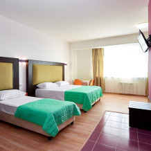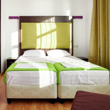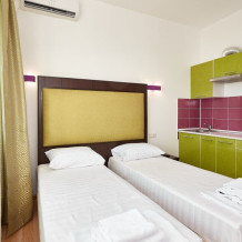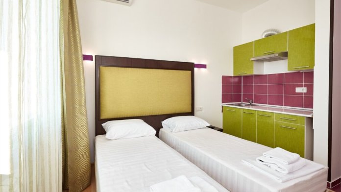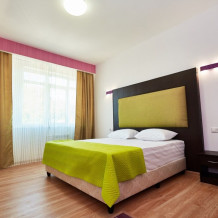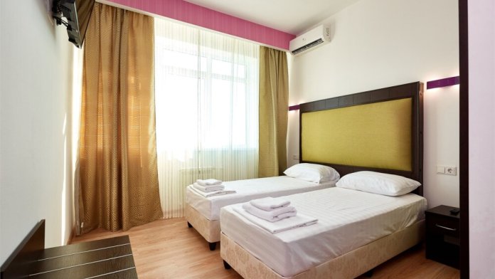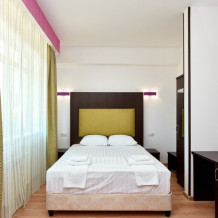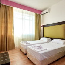 3-местный номер без балкона подойдет для бюджетного размещения 3-4 человек оборудован кухонным уголком с обеденным столом, столовой посудой и эл.чайником. Для размещения 4го гостя в номере есть пуф, трансформирующийся в полноценную дополнительную кровать.