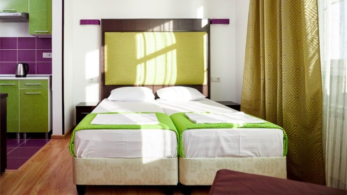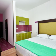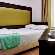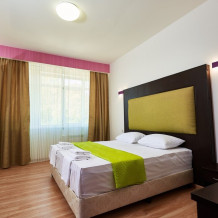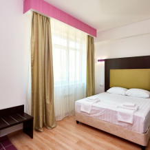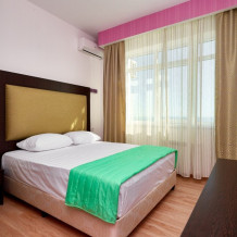 Стандартный 2-местный номер с одной двуспальной кроватью, с балкона которого открывается вид на береговую линию моря, а в вечернее время можно любоваться картиной солнечного заката в морской горизонт. Номер подходит для размещения 2 гостей предпочитающих засыпать в одной постели. В номере есть столовая посуда и столовые приборы, прохладу в нем обеспечивает сплит-система, окна оснащены москитными сетками.