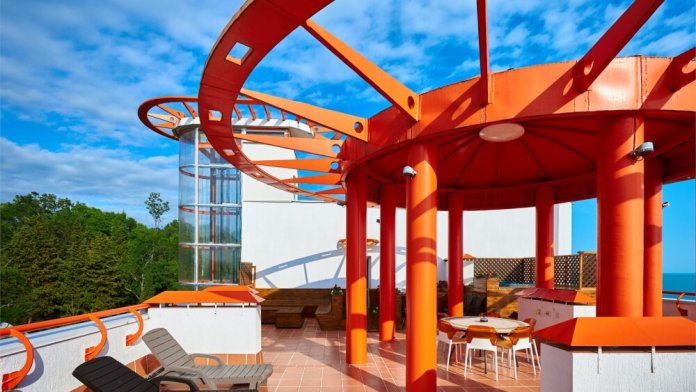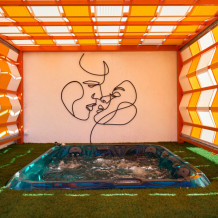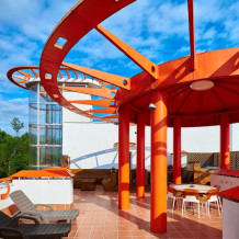 Пентхаус с террасой на крыше отеля с шезлонгами, 6-ти местной джакузи и зоной для пикника с набором мебели и газовым грилем. В обоих спальнях есть большие телевизоры с плоским экраном и доступом в интернет, кровать KingSize в одной спальне и раскладывающийся угловой диван во второй. Гостиная оборудована кухней с варочной поверхностью, вытяжкой и потолочным вентилятором, а так же сплит-системой, холодильником и телевизором. Гостям доступна премиум линейка отельной парфюмерии, банные халаты, имеются пуфы, раскладывающиеся в полноценную кровать.