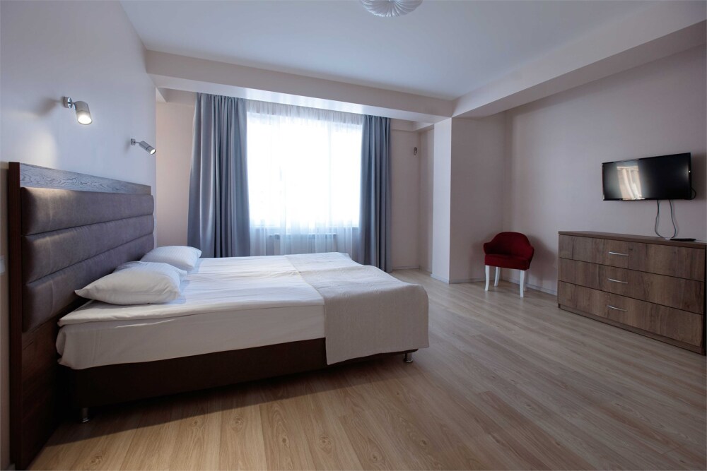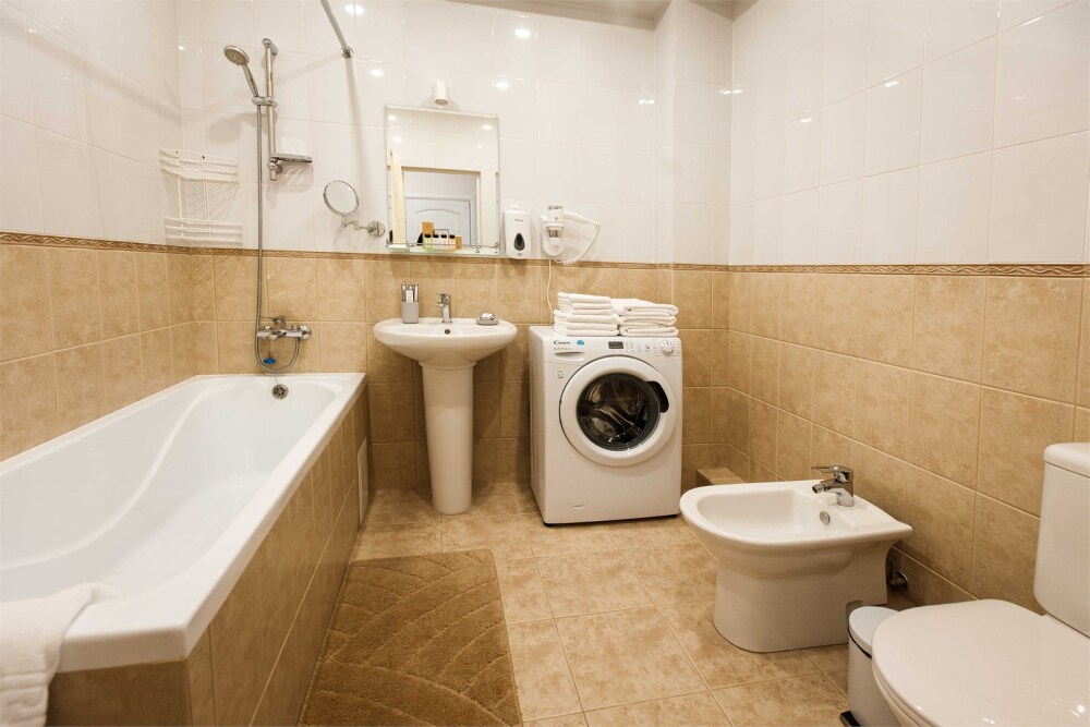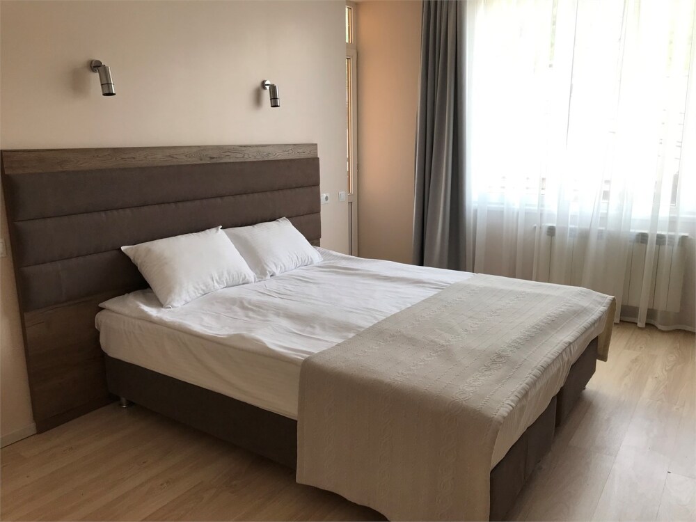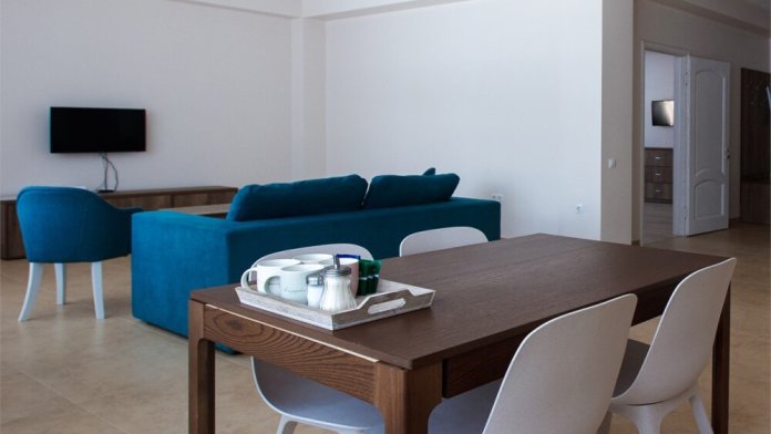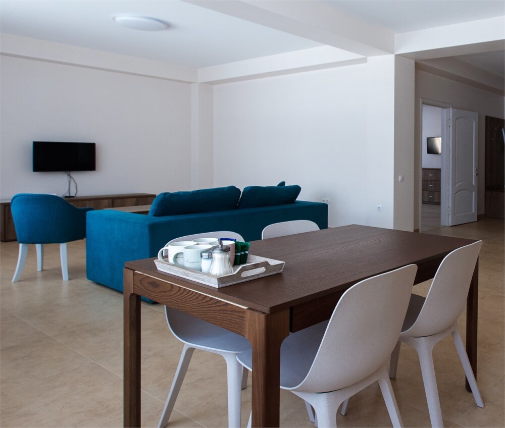 В вашем распоряжении кухня - гостиная и отдельная спальня, прихожая, совмещенная ванная и туалет – общая площадь апартаментов 100 кв. м.