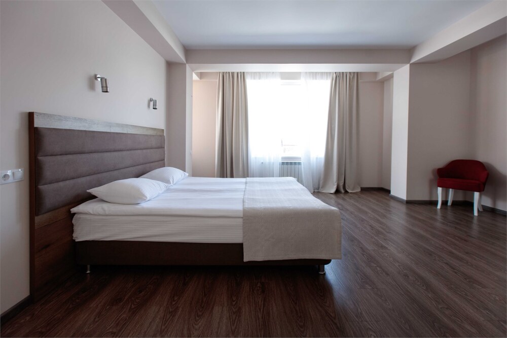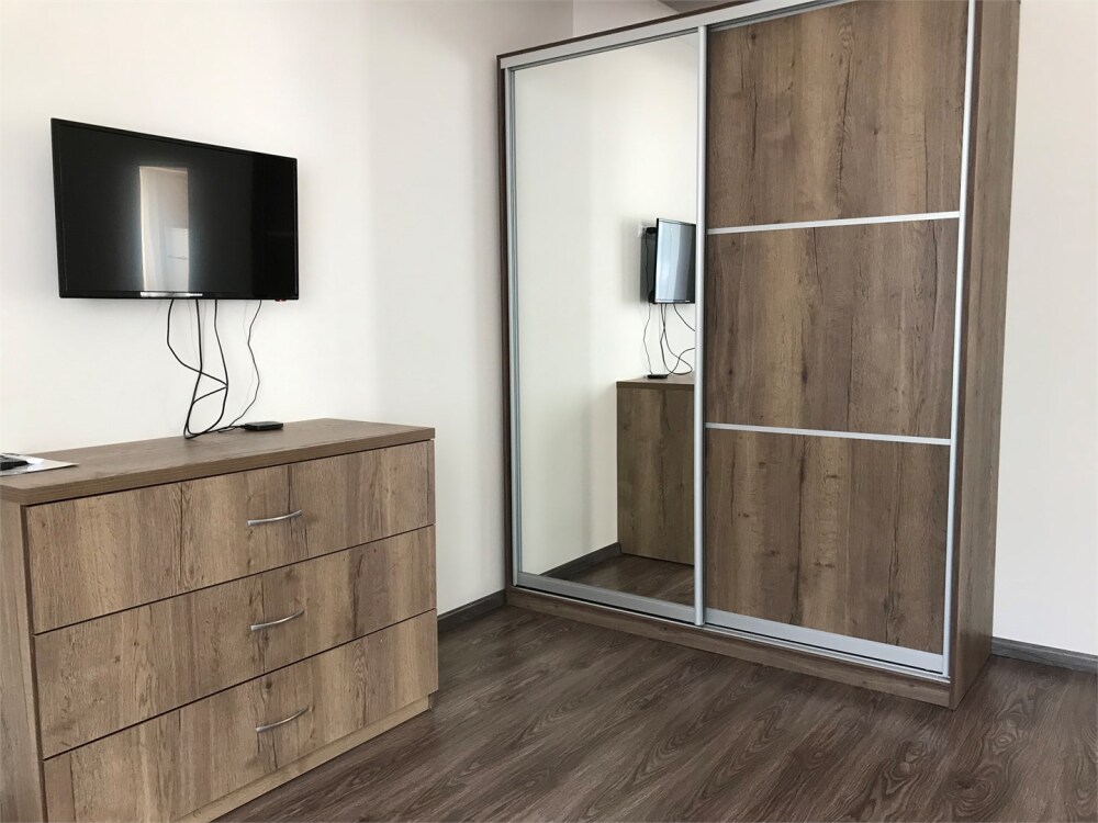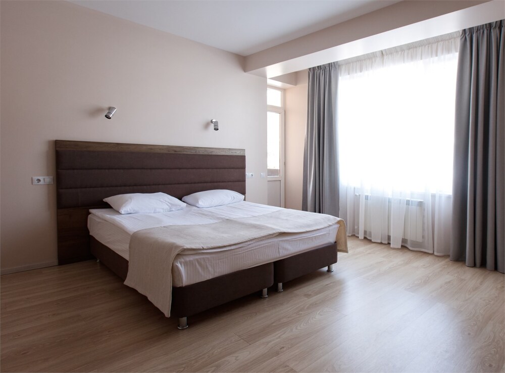 Вместимость до четырех человек. В отдельной спальне имеется двуспальная кровать, в зале раскладной диван на двоих человек.