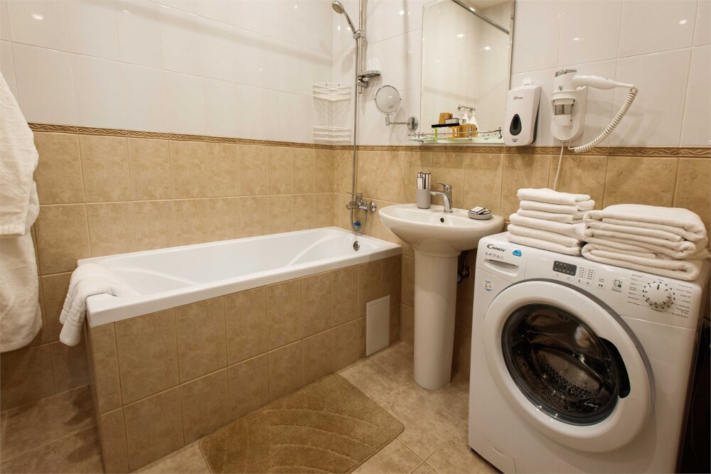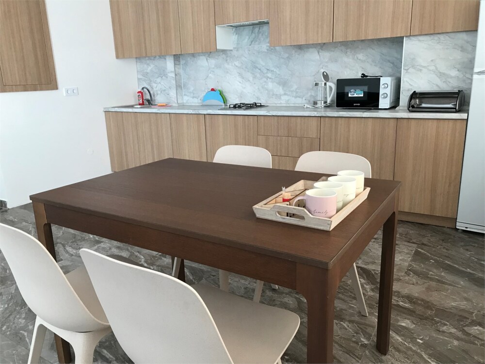 Помещение оснащено всем необходимым для комфортного проживания 4-х человек. Двуспальная кровать, двуспальный диван в гостиной, обеденная зона, кухонный уголок с газовой плитой, полы с подогревом, посуда, холодильник, стиральная машина, фен, утюг, гладильная доска, телевизор, Wi-Fi. Парковка возле дома и на прилегающей улице.