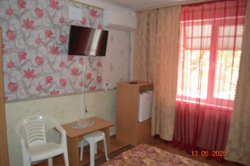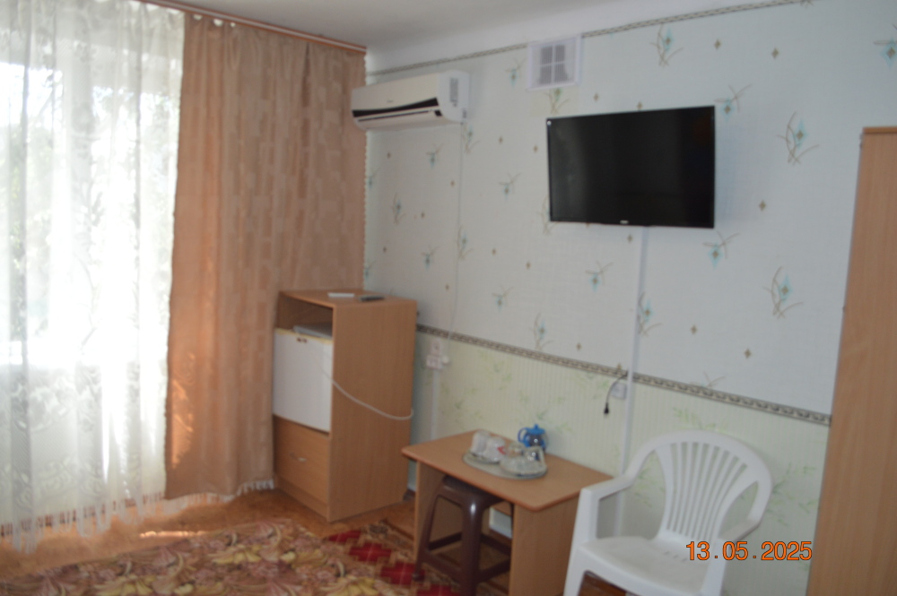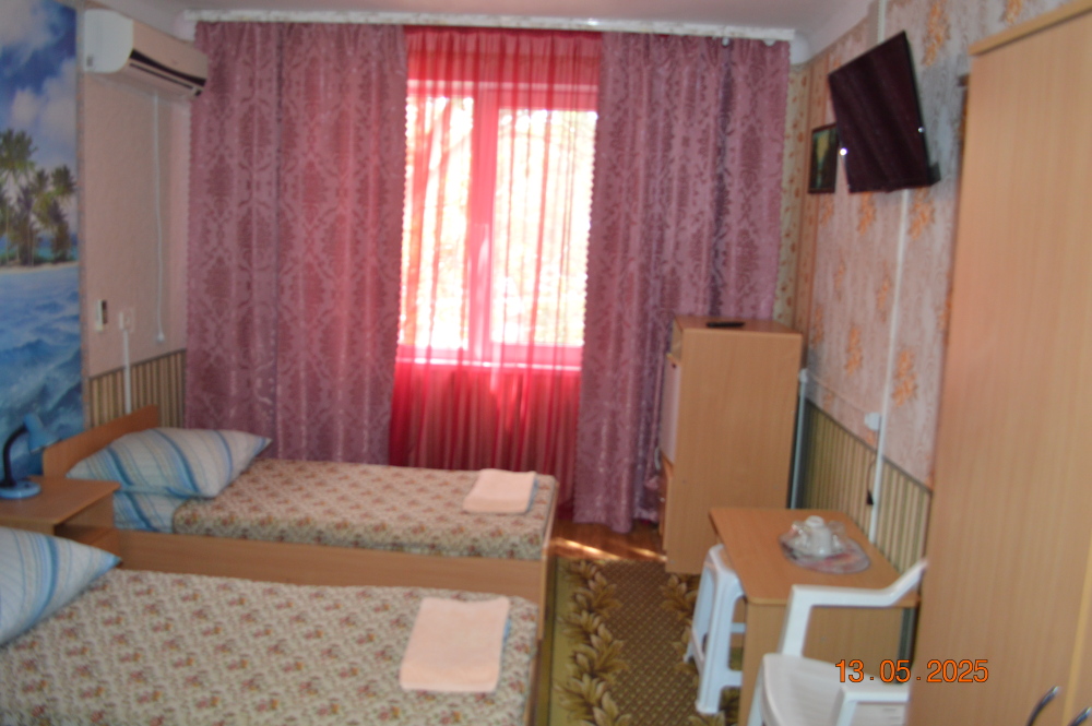 Двухместный номер с двумя односпальными или одной двухспальной кроватью, расположение 3-4 этажи, с кондиционером и холодильником. Санузел находится в секции на 3-4 номера, общий.