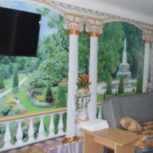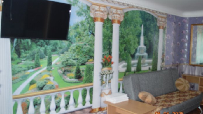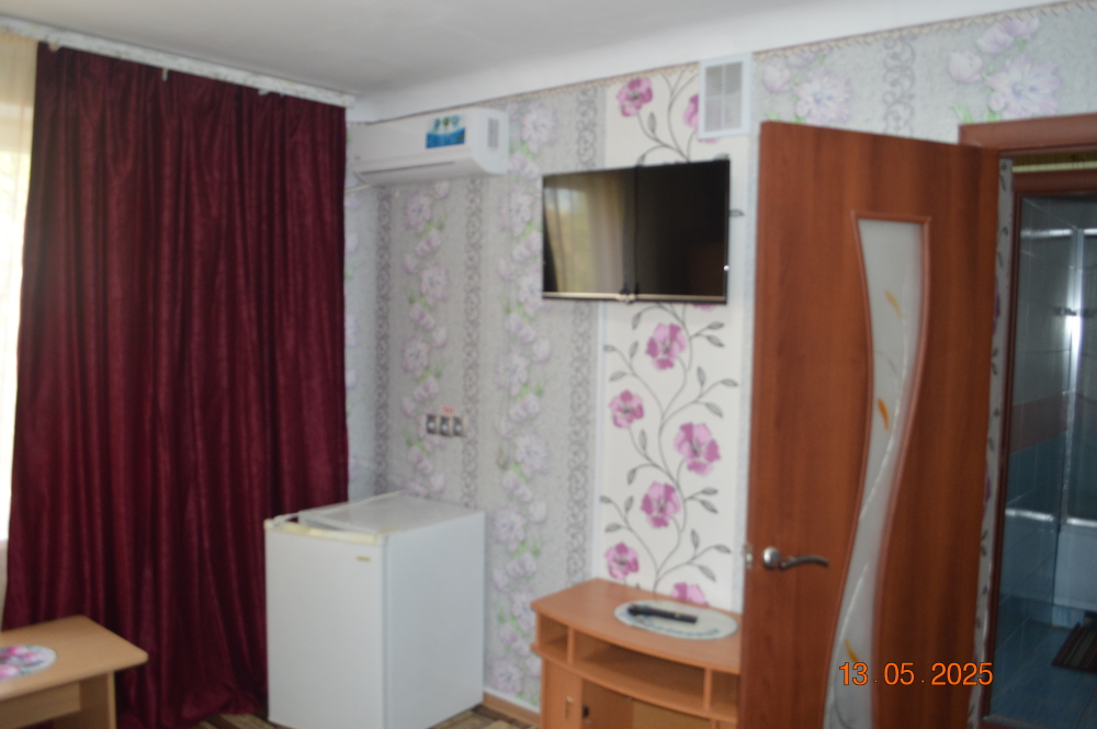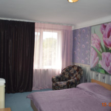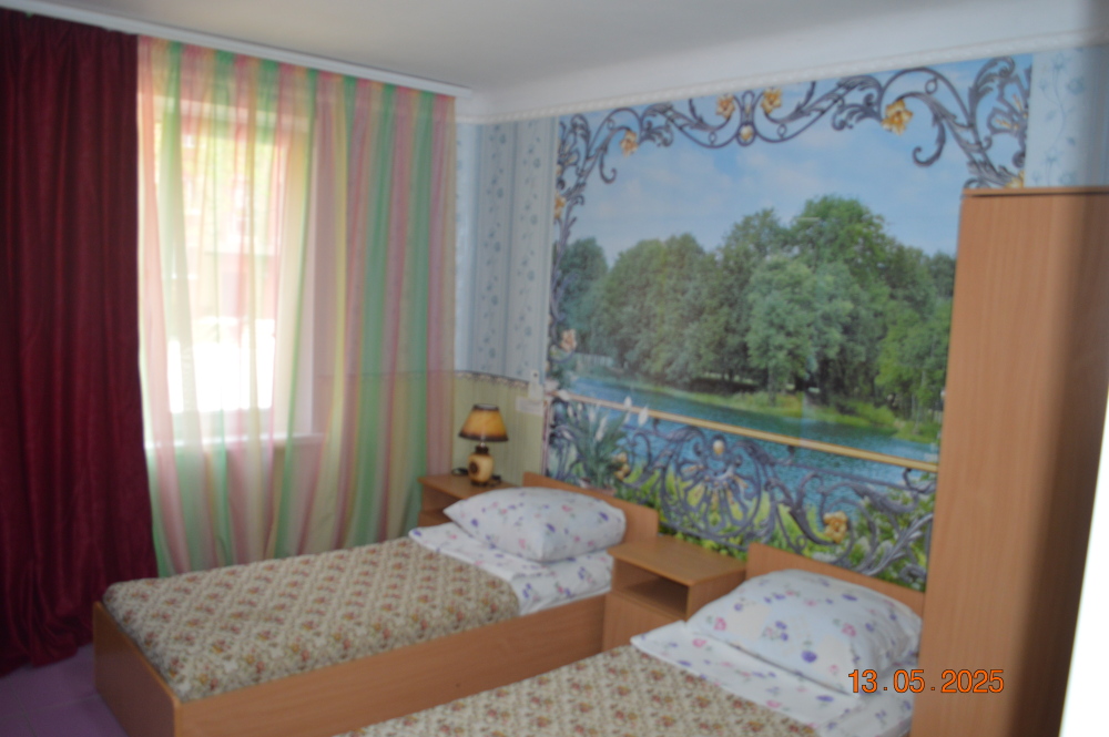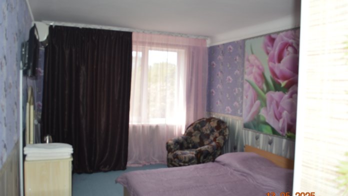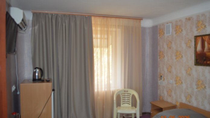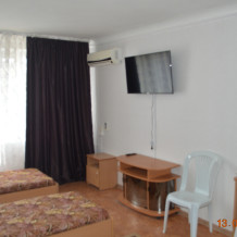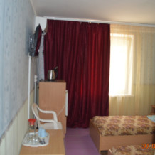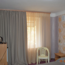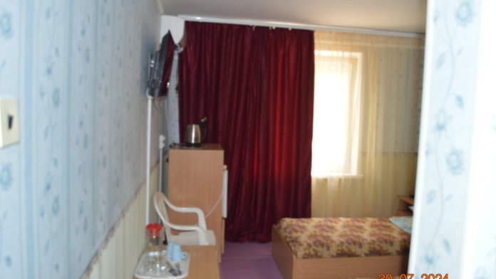 Номер двухкомнатный, расположен на 2 этаже гостиницы, расчитан на проживания до 4 человек.Имеется ТВ, холодильник, кондиционер, эл.чайник, посуда, кухонный уголок, кресло, шкаф, комод, тумбочки, торшер, настольная лампа итд.