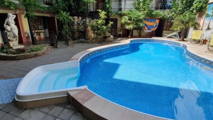 Это современное трехэтажное здание с благоустроенным уютным внутренним двором. Во дворе с ландшафтным дизайном (фонтаном, водопадом), обилием цветов и зелени, новый, просторный бассейн с подогреваемой водой. На территории гостиницы есть бесплатный доступ к сети Wi-Fi. На первом этаже здания расположена кухня для самостоятельного приготовления пищи.