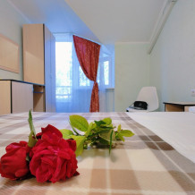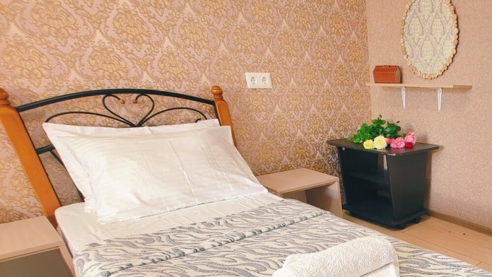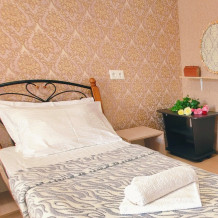 Оснащение номера: удобная односпальная кровать, встроенный шкаф для хранения одежды, тумбочка или журнальный столик. Для комфортного проживания установлена: сплит система, мини-холодильник, телевизор, чайник, кружки. В ванной комнате: набор одноразовой косметики (гель, шампунь, мыло).