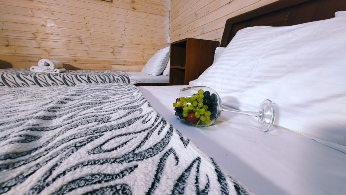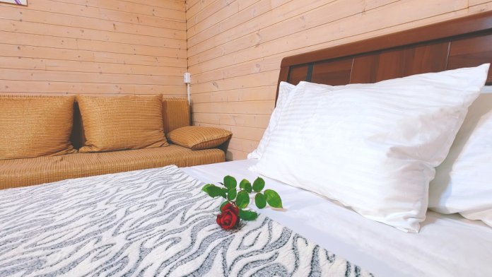 Оснащение номера: двуспальная кровать и двуспальный диван, шкаф для хранения одежды, тумбочка или журнальный столик. Для комфорта установлена: сплит система, мини-холодильник, телевизор, чайник, кружки. В ванной комнате: набор одноразовой косметики (гель, шампунь, мыло).