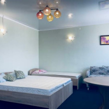 Гостевой дом из 3-х этажей возведенный в спокойном районе города на небольшой зеленой улице Кирова. Здесь нет интенсивного движения машин и ночных дискотек. Идеальное место для семейного отдыха. Рядом с гостевым домом находятся: продуктовые магазины, продовольственный рынок, аптека, остановка общественного транспорта, банкомат, кафе, санатории «Надежда» и «Русь».