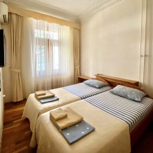 Комфортные 2-комнатные номера, с одной 2-спальной кроватью или двумя односпальными, диван в отдельной комнате.