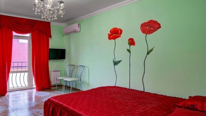 В гостевом доме сдается всего 5 номеров. Каждый из них оборудован собственным санузлом с душем, хорошей мебелью, кондиционером, телевизором с цифровыми каналами, беспроводным интернетом. Особый шарм комнатам придают французские балкончики.