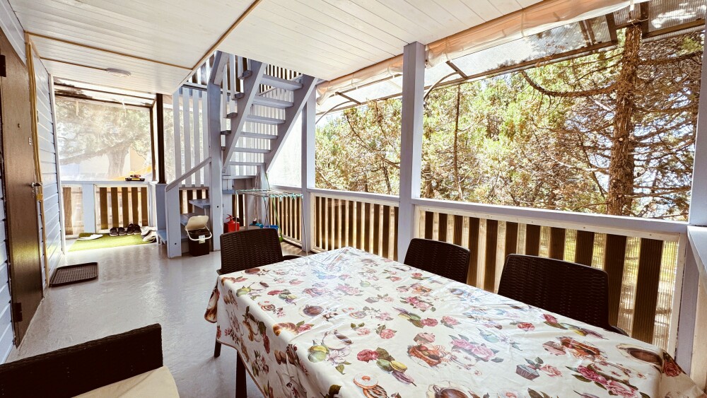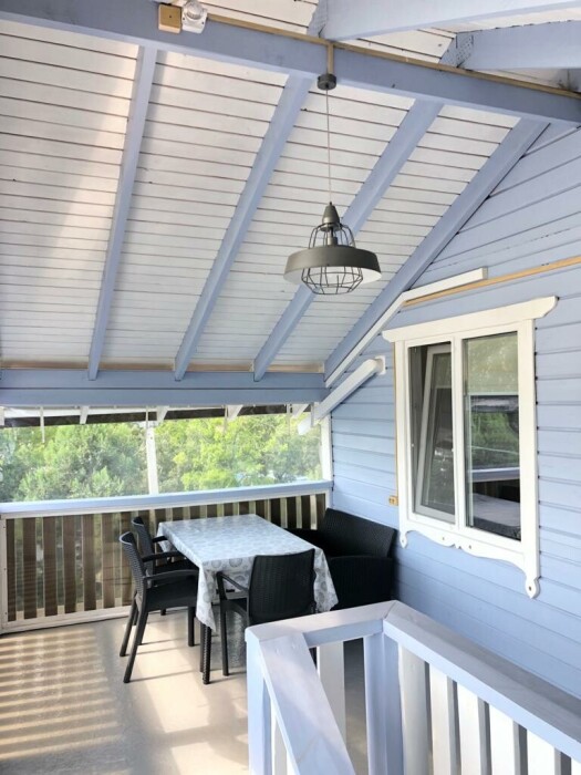 В одной спальне двуспальная кровать, во второй - две односпальные кровати, которые можно сдвинуть в одну большую кровать с одним большим матрасом. Апартаменты имеют собственную полноценную кухню с техникой, посудой, кухонными принадлежностями, индивидуальную уборную с полотенцами по количеству человек, фен. Апартаменты имеют индивидуальную веранду с видом на можжевельники на расстоянии вытянутой руки.
