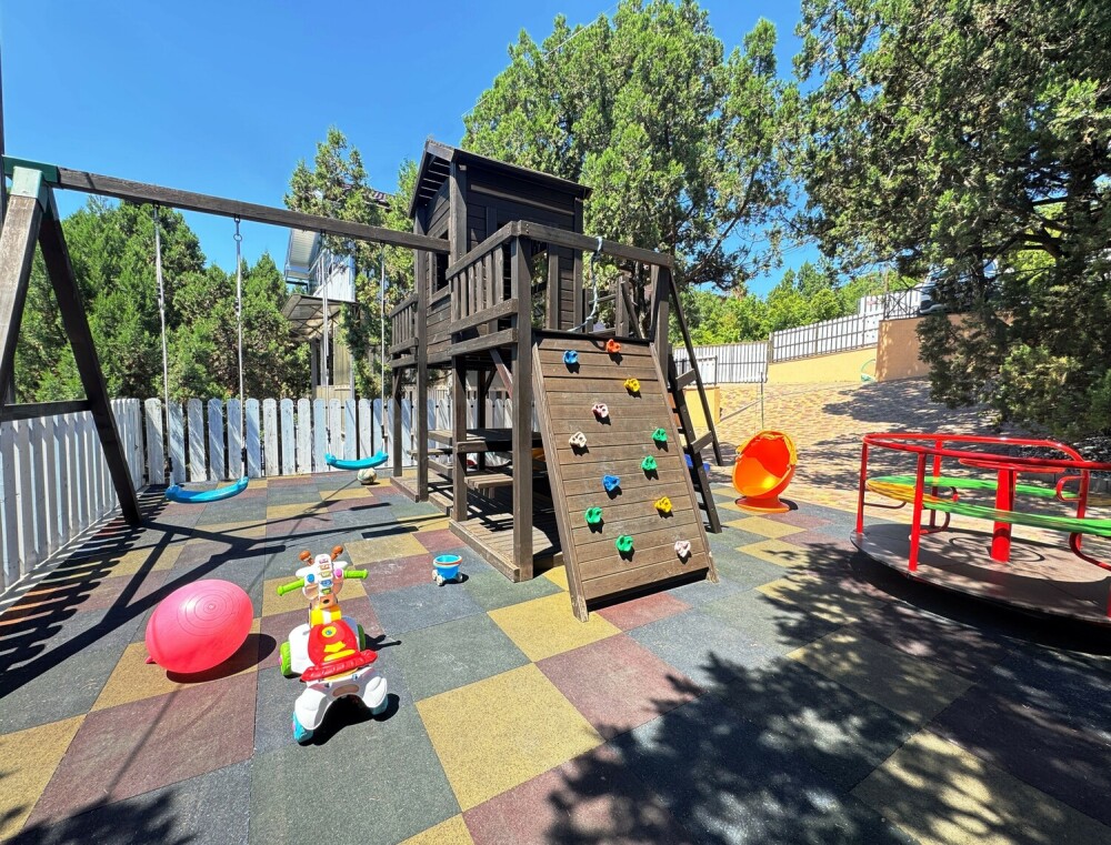 На территории запрещены вечеринки, с 23:00 часов до 8:00 утра «тихий час». К Вашим услугам открытый подогреваемый бассейн размером 9х5 м., игровые зоны для детей, настольные игры для детей и взрослых, зона барбекю, общая кухонная зона для приготовления пищи со всей кухонной утварью и техникой, включая кофе машину на зернах.