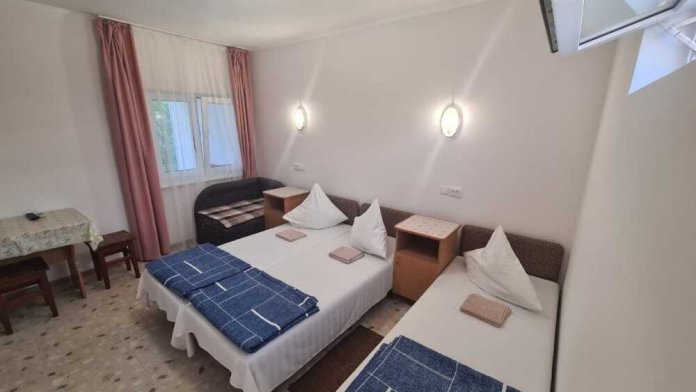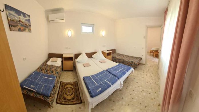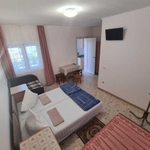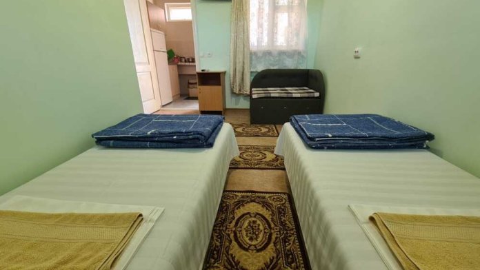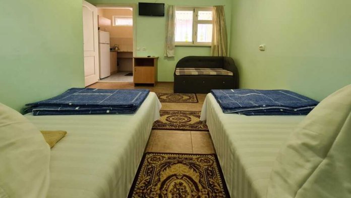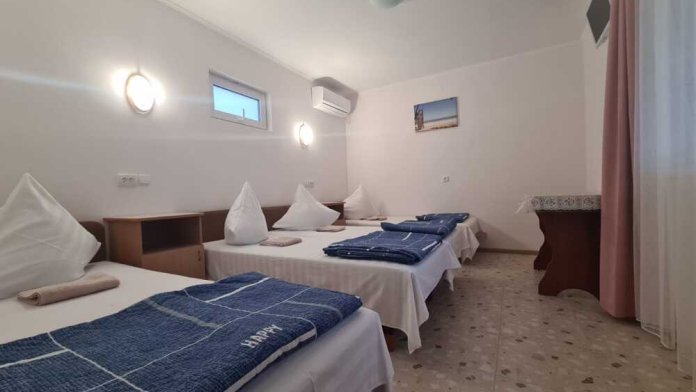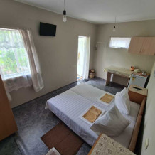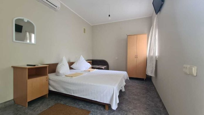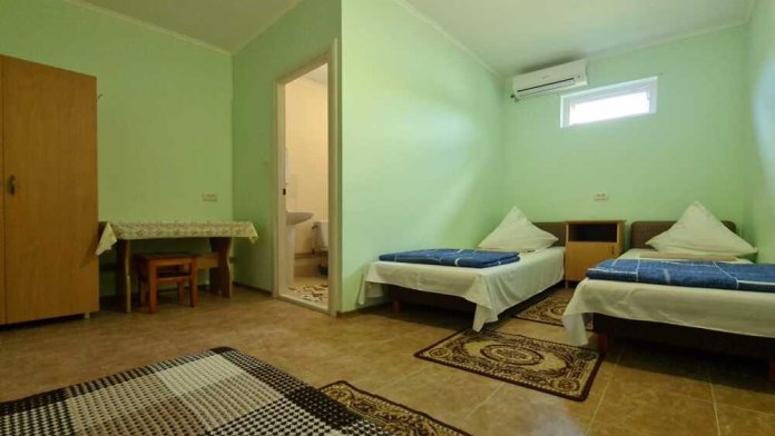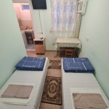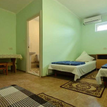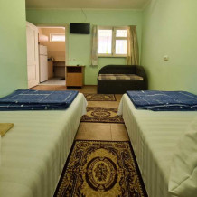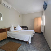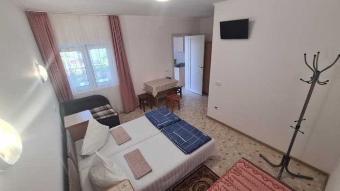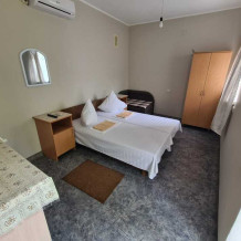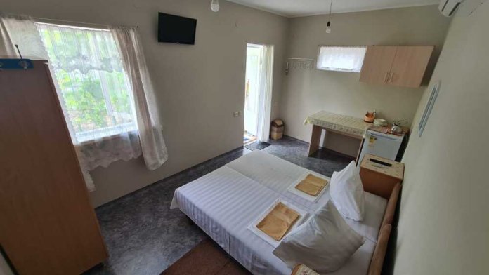 В номере: набор мебели, тв, вай-фай, холодильник, личная посуда, кондиционер, веранда. Санузел и кухня рядом, в шаговой доступности.