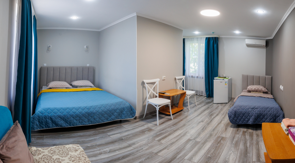 общий санузел для двух номеров, холодильник в общем блоке на два номера, доп.место( кресло-кровать) - 1 шт.