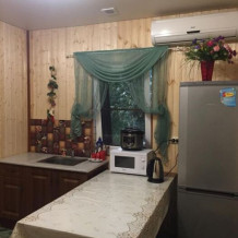 Номера 30-40 кв м и находятся на мансардном этаже. В номере есть кухонный гарнитур с раковиной, СВЧ-печь и мультиварка.