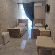 Для гостей приготовлены номера разной вместимости и категорий со всем необходимым для комфортного отдыха. Номера обставлены мебелью, есть кондиционер, телевизор, холодильник, сейф. На этаже установлены гладильные принадлежности, за доплату можно пользоваться стиральной машинкой.